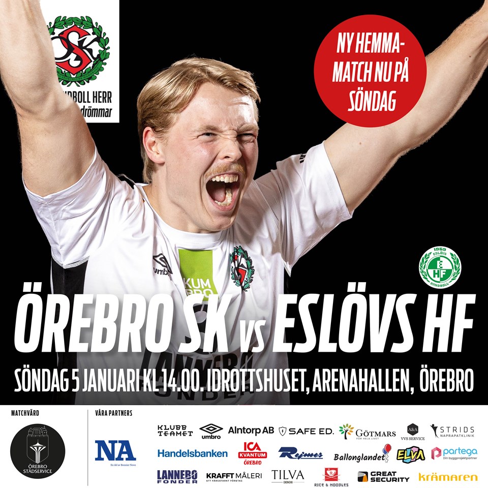 Vi inleder det nya året med en hemmamatch den 5 januari. Klockan 14:00 nu på söndag möter vi gästande Eslövs HF. Kom och heja fram herrarna till seger.
