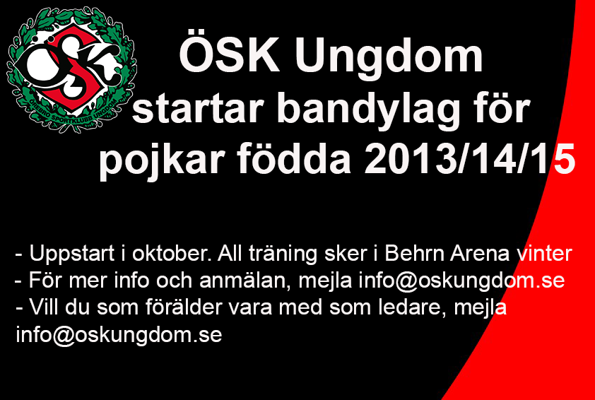 ÖSK Ungdom startar säsongen 2021/2022 bandylag för pojkar födda 2013/14/15. Uppstarten sker 6 oktober kl. 17.00-18.00 och all träning sker i Behrn Arena Vinter (Bandyhallen), Restalundsvägen 4. Det är bra om du har med dig klubba, skridskor och hjälm samt är klädd för träning. För dig som inte har egen klubba, skridskor och hjälm så finns det att låna, dock i ett begränsat antal. Anmälan sker till info@oskungdom.se. Vill du som förälder vara med som ledare eller har några frågor, ta kontakt med oss genom mejlen ovan. Hjärtligt välkomna!