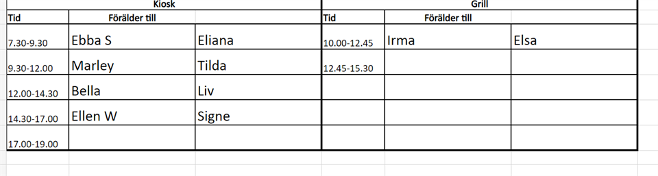 Vi är 2 lag imorgon och vi tänkte att vi kör olika samlingstider för de olika lagen! Så här är lagindelningen: Samling 9.30 Iris Kinora Bella Wilma Irma Mariama Samling 10.30 Ebba Stella Elisa Laura Tilda Marley F-F2015 15 sep 2023 0kommentarer