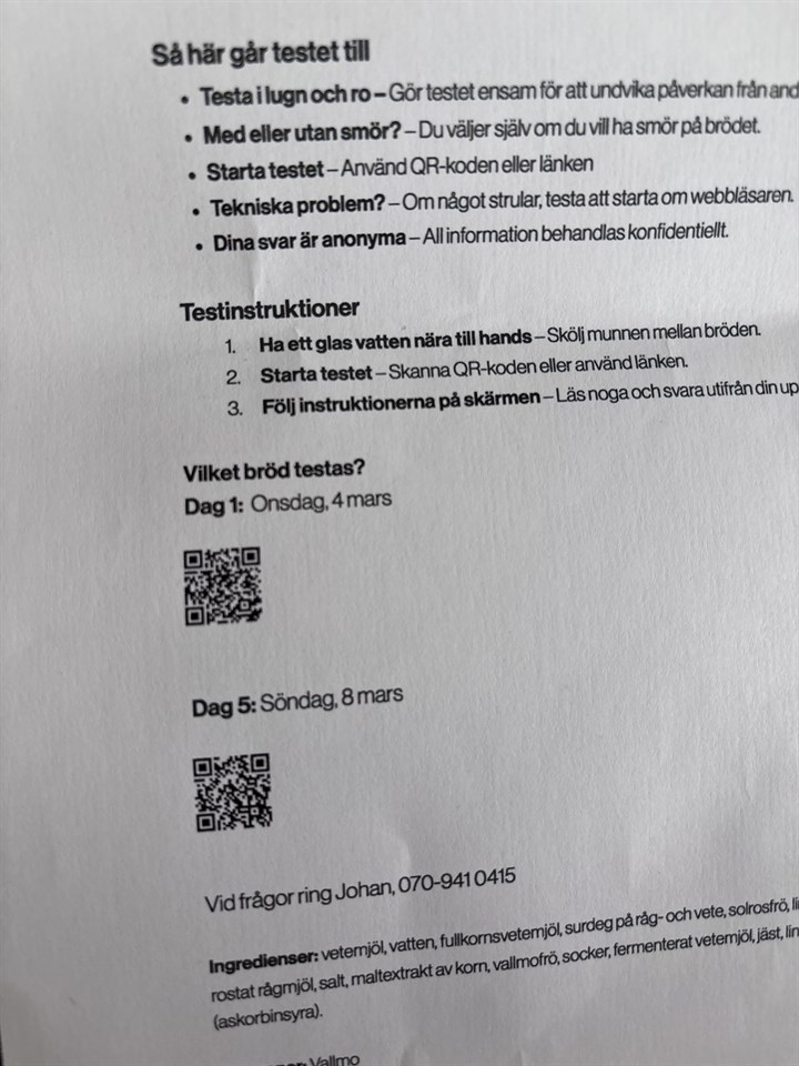 Mina brödtestare har tappat bort lappen med koden till dagens test. Kan någon länka? 🙏