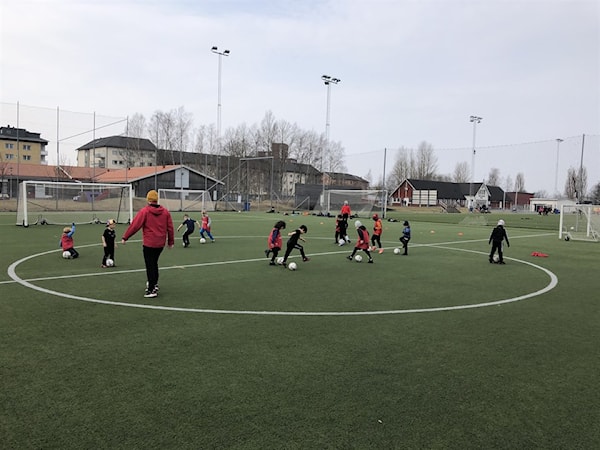 Träningen avslutades med spel på halvplan, sex mot sex. Bra fart på det.