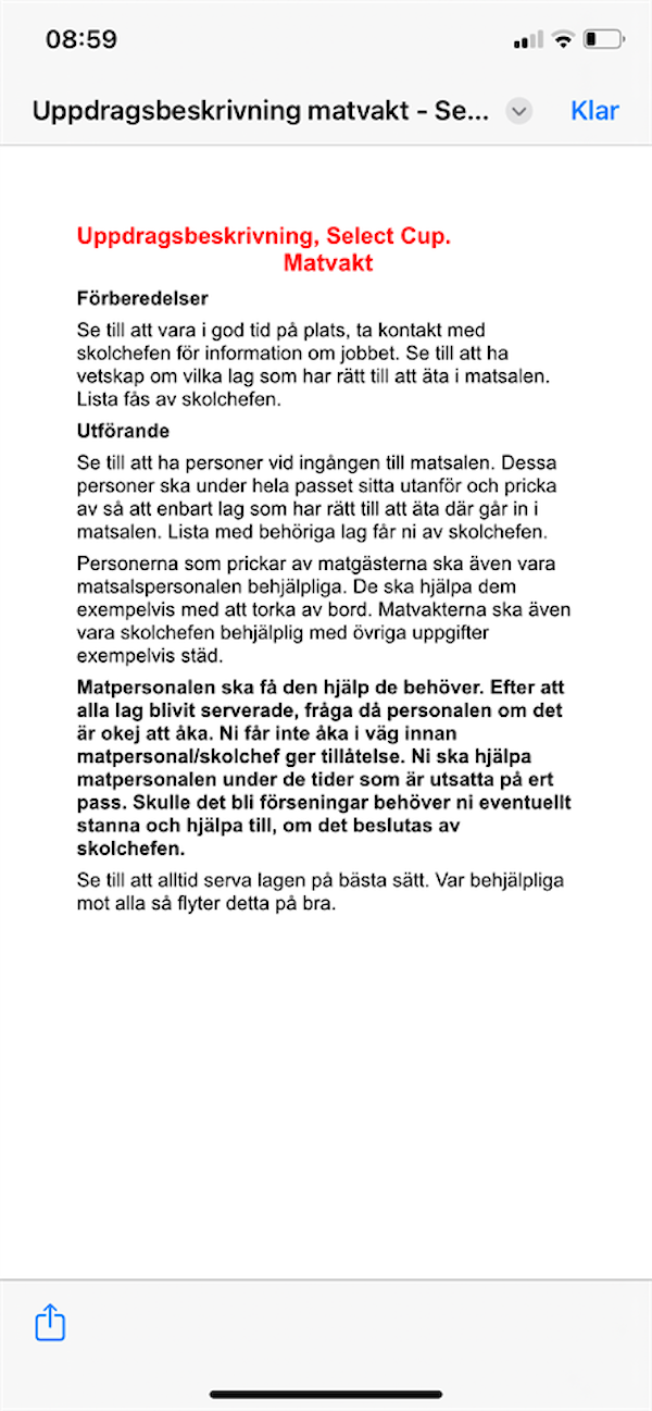 Ert arbete på Select Cup kommer vara följande: