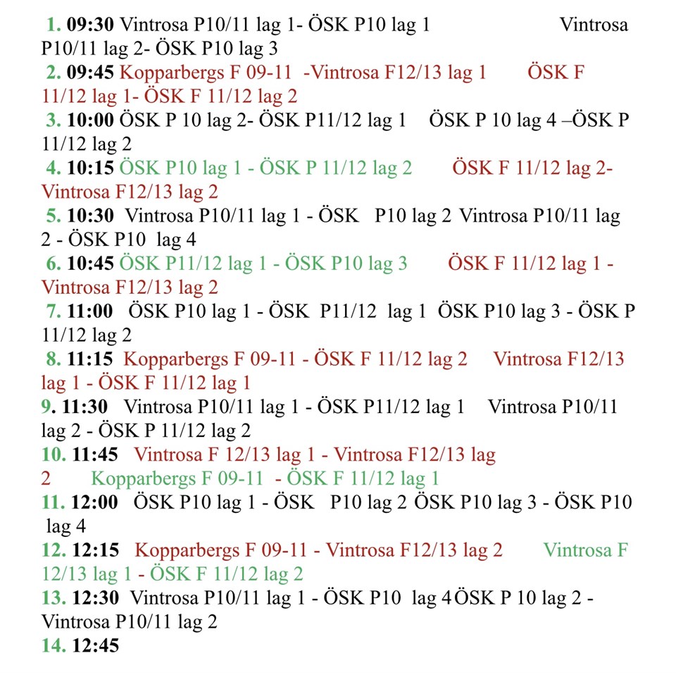 Här kommer spelschemat inför helgen. Samling 08.30 H-P 14 (Födda 2010) 5 dec 2019 0kommentarer