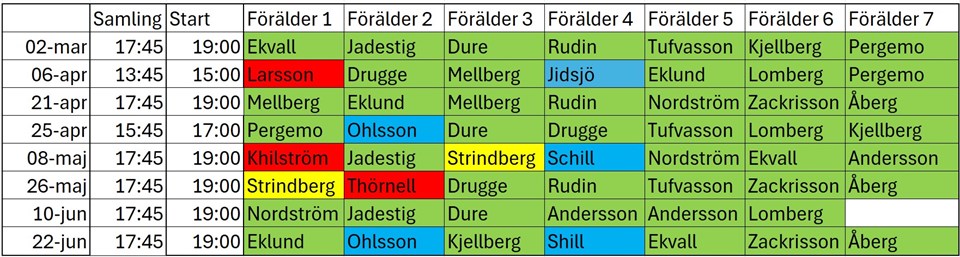 När jag gjorde uppdateringarna såg jag även att Nordströms fått 4 pass och det var inte meningen, det betyder tyvärr att vi har en lucka att fylla, vem anmäler sig frivillig till en extra match den 10/6?