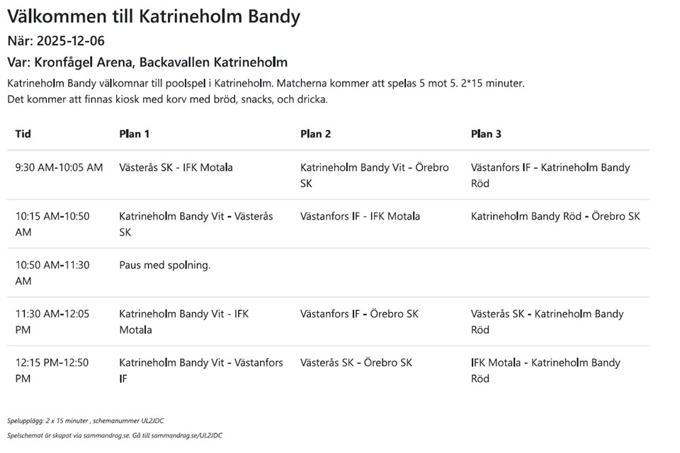• Spelschema Katrineholm