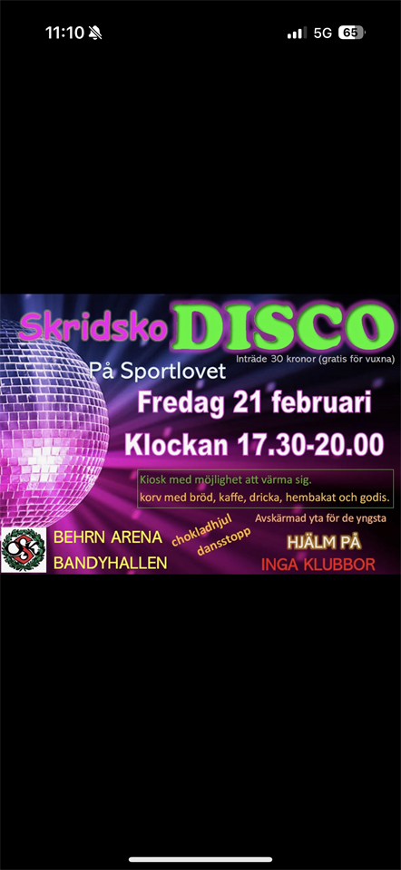 Hej, Fredagen på sprotlovet (21 feb) är våran träning inställd, detta för att det kommer att arrangeras ett skridskodisco. Vi som spelar i 2016-2017 får gå in grattis i och med att det är på "våran" träningstid. Se mera information på bilden. B-P/F16/17 12 feb 2025 0kommentarer