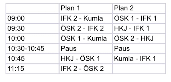Vi har anmält två lag till poolspelet för att alla ska få så mycket speltid som möjligt. Lagindelning görs på plats på söndag.