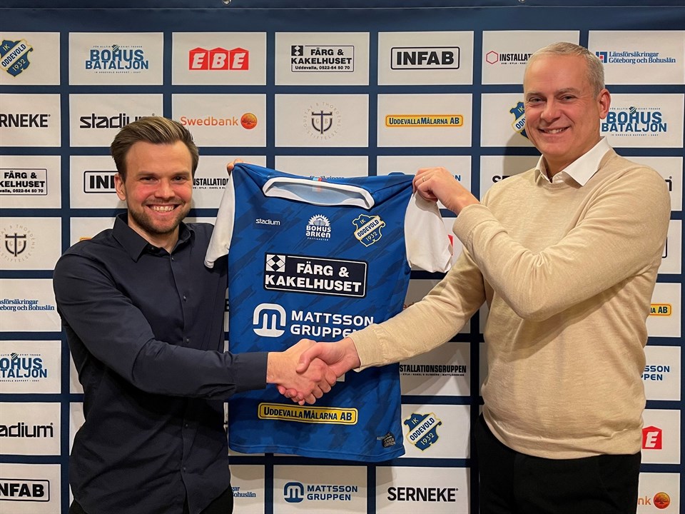 Han har spelat fotboll i stort sett hela sitt liv och nu tar han steget in i Oddevolds organisation och blir vår nya klubbchef. På bilden ovan ser vi Daniel Vilhelmsson, till vänster, hälsas välkommen till Oddevold av ordförande Peter Bjurström. Daniel Vilhelmsson är 33 år och född och uppväxt i Brastad. Där började också hans fotbollskarriär, när han tidigt började spela i Stångenäs AIS. Han har därefter även representerat Lysekils FF, Kungshamns IF, IFK Uddevalla och Oddevold innan han avslutade med att återvända till Lysekil, som nu blivit AIK, där han spelade sin sista match 2018. I Oddevold spelade han en säsong, 2016, och gjorde då 22 matcher och två mål. Privat har han under hela sitt 15-åriga arbetsliv varit H-Fönstret i Brastad trogen, där han vandrat från en plats i produktionen till att bli säljare. Nu skall han alltså bland annat utöva de sistnämnda färdigheterna i Oddevold. Han bor numera på Sunningen med sambo och ett barn, där tillökning kommer att ske under våren. - Det skall bli fantastiskt roligt, att få jobba i föreningslivet i en så välmående förening som Oddevold. Jag vill vara med på den här resan, för det är en resa som Oddevold startat. Jag brinner för fotboll och föreningslivet, säger Daniel. Han berättar vidare, att han och en kamrat under åren i Stångenäs AIS hjälpte till med att få in sponsorer och att killarna som träningspass sprang runt och la reklamblad i hela samhällets brevlådor. Träning och föreningsarbete på en och samma gång. - Det här är något av en pojkdröm som blir sann och jag tar med mig min försäljningserfarenhet in i detta uppdrag. Oddevold har ”alltid varit på gång”, men nu har man något alldeles extra på gång – ett bra A-lag, en stark ungdomsakademi, parafotboll och så startar man i år upp med egen flickverksamhet. Han börjar sin tjänst den 1 juni 2022. Välkommen till Oddevold, Daniel! Oddevold tackar sin samarbetspartner Premier för en mycket lyckad rekrytering.