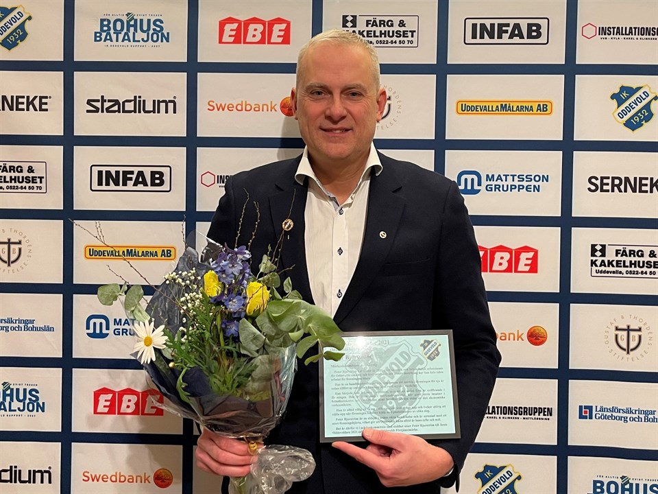 Oddevolds årsmöte på torsdagskvällen på Thordéngården hölls inför ett 30-tal medlemmar under ledning av Svenska Fotbollförbundets ordförande Karl-Erik Nilsson, som med humor och säkra klubbslag elegant förde mötet i hamn. På bilden ovan ser vi en smått rörd Peter Bjurström efter att han utnämnts till Årets Oddevoldare med inramad motivering och blombukett. Prick halv sju öppnade ordförande Peter Bjurström mötet och efter parentation, fastställande av röstlängd och godkännande av dagordning valdes Karl-Erik Nilsson till ordförande och Leif Lindvärn till sekreterare för mötet. Därefter gick man igenom verksamhetsberättelsen, resultat- och balansräkningen samt revisorns berättelse. Detta utmynnade i ansvarsfrihet för styrelsen. Innan det var dags för de olika valen fastställdes medlemsavgifterna för 2023 och så gick kassören Lars Tång kortfattat igenom budgeten för 2022. Valen utföll enligt följande: a) Ordförande på två år: Peter Bjurström (omval). b) Tre styrelseledamöter på två år: Bengt Bäckman, Anders Nylander (båda omval) och Peter Karlsson (nyval). c) Fyra suppleanter i fastställd turordning på ett år: Robert Carlén, Karl-Erik Nilsson, Bjarne Svensson och Lars-Inge Olsson (samtliga omval). d) En auktoriserad/godkänd revisor på ett år: Thomas Olofsson, SEK-gruppen (omval). e) Till valberedning på tre personer, varav en sammankallande, på ett år: Martin Hollertz (sammankallande), Hans Bäckström och Kalle Gustafsson (samtliga omval). Styrelsen består också av ledamöterna Lars Tång, Mats Johansson och Conny Ringblom, som alla har ett år kvar på sina mandat. Inga motioner hade inkommit varpå ett par övriga frågor besvarades. Sedan var det dags för Leif Lindvärn, Kjell Johansson och Gunnar Lund i märkeskommittén att dela ut följande utmärkelser till förtjänta medlemmar: * Silvernål (minst fem års aktiva insatser): Thore Andersson, Bengt Bäckman, Ulrika Carlsson, Christian Granat och Glenn Karlsson. * Guldnål (minst tio års aktiva insatser): Gunnar Andreasson och Niclas Brav. * Förtjänstmärke/Årets Oddevoldare (för betydande insatser under verksamhetsåret): Peter Bjurström. Så här löd märkeskommitténs motivering till utmärkelsen Årets Oddevoldare: "Peter Bjurström har under år 2021 gjort en stark och betydelsefull arbetsinsats för Oddevolds räkning och med entusiasm och positiv inställning har han hela tiden arbetat för föreningens bästa. Han är en handlingskraftig person, som genom sitt inträde i föreningen för sju år sedan tillfört ny energi och kunskap, som varit mycket värdefull. Han började som ledamot i styrelsen, men är nu sedan fyra år ordförande i föreningen. Han är även med i marknadsutskottet, har gjort stora insatser i fotbollsutskottet och Oddebollen samt handhar viktiga delar av den ekonomiska verksamheten. Han är alltid villig att ta tag i olika projekt som dyker upp och tvekar aldrig att ställa upp när föreningen behöver hjälp med punktinsatser av olika slag. Peter Bjurström är en eldsjäl i ordets rätta bemärkelse och är utrustad med ett stort föreningshjärta, vilket gör att Oddevolds bästa alltid är hans syfte och mål. Det är därför vi i märkeskommittén med stolthet utser Peter Bjurström till Årets Oddevoldare 2021 och överlämnar Oddevolds Förtjänstmärke." Det trivsamma årsmötet var avklarat på exakt en timma, så klockan halv åtta gav sig de nöjda mötesdeltagarna hemåt i den mörka februarikvällen.