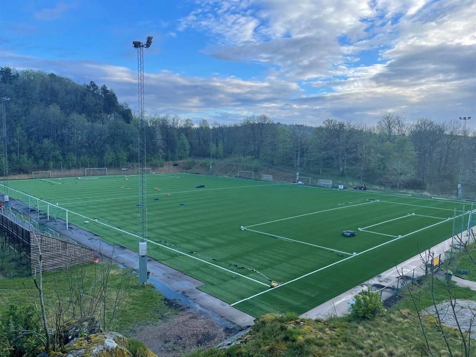 Efter fyra veckors arbete är det nya konstgräset nu på plats på Thordéngården och träningar och matcher kan genomföras fr o m tisdag den 25 maj. Det tog en vecka mer än planerat pga att regnet fallit i större omfattning än beräknat, men nu är det nya gräset, linjerna, sanden och granulatet till allas glädje på plats. Om några dagar kommer gamle Oddevoldmålvakten Dick Last upp till Thordéngården för att slutbesikta det månadslånga arbetet. Han är projektledare från Gårda Johan och besiktningen görs tillsammans med Emil Palmqvist, Uddevalla kommun, samt Peter Bjurström och Leif Lindvärn från Oddevold. Men planen kan alltså redan nu och innan besiktningen sker tas i bruk. Det gamla plastgräset invigdes den 31 oktober 2009 och har alltså funnits på plats under snart tolv år.