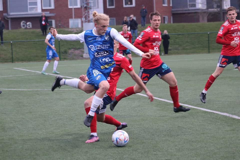 Det blev ett derby med huvudingrediensen kämpa, som Oddevold kunde vinna efter en jämn tillställning. Matchen slutade 1-2 (0-1) och båda Oddevolds mål gjordes av Carl Lext. På bilden ovan ser vi Carl Lext i kamp mot tre motståndare. Foto: Susann Sannefjäll. Båda lagen kom till matchen efter förlust i premiären följt av fyra matcher utan förlust. För Vänersborg bestod den förlustfria sviten av två vinster och samma antal oavgjorda, medan Oddevold ståtade med fyra vinster. I den blåsiga och lite kalla fredagskvällen visste vi alla, att det var två olika spelstilar, som nu skulle drabba samman, där båda lagen väl visste hur motståndaren ville spela. Men frågan var om något lag skulle anpassa sig efter det andra eller om båda skulle hålla kvar vid sitt eget spelsätt. Lagen hade ju mötts i en jämn träningsmatch i februari, där Oddevold till slut vann med 3-2, så där hade man fått en föraning om vad som väntade denna kväll. Redan från start stod det klart, att Oddevold hade valt, att spela lite längre bollar för att undvika Vänersborgs aggressiva spelstil med hög press. Efter uppspelen väntade kamp om andrabollen och denna inledande matchbild varade egentligen hela kampen ut. Oddevolds inledning var liksom under tidigare matcher stark, ja kanske rent av avgörande för matchutgången. Vi fick en försmak på detta i den sjätte minuten, när Carl Lext nickade i burgaveln, efter att Oscar Iglicar lyft in bollen från högerkanten. Drygt tio minuter senare samarbetade duon igen och då resulterade det i matchens första mål. 0-1 (17) Adam Bergholtz nickade bollen framåt till Imer Beqiri, som befann sig tiotalet meter in på Vänersborgs planhalva, och när han kommit några meter in i straffområdet spelade han bollen inåt och snett bakåt. Oscar Iglicar stötte direkt bollen vidare åt höger till Carl Lext vid den bortre stolpen, som från målområdeslinjen med en bredsida slog bollen i mål lågt och tätt intill målvakten Sebastian Ekholms vänstra stolpe. Efter målfirande och någon minuts spel slog Oddevold till igen. På en lång utspark från Oscar Ekman sprang sig Imer Beqiri fri, blev fälld bakifrån av backen Sandigi Jobe precis utanför straffområdeslinjen, varpå den påföljande målchansutvisningen var solklar. Att Oddevold var en spelare mer på planen märktes egentligen inte, varken inledningsvis eller över längre tid. Matchbilden bestod nästan uteslutande av kamp och målchanserna var mycket få. Det var faktiskt så, att förutom matchens tre mål lyckades lagen bara skapa var sin het målchans. Oddevolds har beskrivits ovan i form av Imer Beqiris friläge och Vänersborgs kom i matchens sista skälvande sekunder. Efter pausvilan utökade Oddevold ledningen efter en kvart in i halvleken. 0-2 (60) Philip Engelbrektsson avstyrde ett Vänersborgsanfall genom att spela bollen till Imer Beqiri, som i mittcirkeln med en motståndare i ryggen uppfattade, att Carl Lext gett sig av mot motståndarmålet. Han direktskarvade därför bollen på djupet och Carl Lext tog den med sig och avslutet från strax utanför straffområdeslinjen var av mycket hög klass – hårt och återigen tätt intill Sebastian Ekholms vänstra stolprot. Med underläge på två mål och en spelare mindre borde detta mål ha fått en negativ effekt på Vänersborg fighting spirit, men så var inte fallet. Det hade nog fordrats ett tredje mål för att knäcka stridsviljan hos det moralstarka hemmalaget. Och ett sådant lyckades inte Oddevold göra, så Vänersborg hade verkligen inte gett upp hoppet om poäng och ordentlig vittring på sådan fick man med ca tio minuter kvar av matchen. 1-2 (84) På Nils Svenssons hörna från höger kunde en omarkerad Marwin Leidewall slå bollen i mål på volley från 5-6 meters håll mitt framför målet. Efter målet fick Oddevold inrikta sig på att försvara sig när Vänersborg tryckte på. Hemmalaget kunde inte spela till sig några målchanser, men man kändes hotande vid ett antal fasta situationer. Och så uppstod situationen som sände chockvågor genom de talrika bortasupportrarna. På en långboll från högerbacksposition sprang inbytte Engjell Ramadani emellan två Oddevoldförsvarare, samtidigt som Oscar Ekman rusade ut ur sitt mål. Ramadani kom först till bollen och lobbade den från 20 meter över Ekman, men bollen smet turlig nog utanför den högra stolpen med bara några decimetrar. Strax därefter blåste domaren av matchen och då hade klockat nått upp till 93.35 På nytt gjorde Oddevolds spelare rakt över gjorde en bra insats i en match där man visade, att man också kunde ta poäng genom att fysiskt stå upp mot en motståndare, som bygger sitt spel på just denna beståndsdel. Ur den jämna kollektiva insatsen vill jag återigen lyfta fram vikten av att göra poäng eller vara inblandad i andra avgörande händelser, så från kvällens match blir det följande två spelare: Carl Lext. Han gjorde båda våra mål. Det första var av måltjuvskaraktär och det andra en vältajmad löpning för att undvika offside följt av ett precisionsavslut. Imer Beqiri. Nästan assist vid båda målen. Vid det första iscensatte han anfallet och var tredje sista spelare på bollen och vid det andra gjorde hans ”ögon i nacken”, att han frispelade Lext. Det var också Imer som blev fälld i målchansläge, vilket ledde till utvisning. I nästa match väntar ett spännande derby, tillika en toppmatch, när vi möter Ljungskile SK på Fridhemsvallen måndagen den 16 maj kl 19.00. Målen 0-1 (17) Carl Lext 0-2 (60) Carl Lext 1-2 (84) Marwin Leidewall Laget Oscar Ekman Philip Engelbrektsson-Fredrik Sundström-Adam Bergholtz Filip Karlin-Jonas Emanuelsson-Kenan Mehovic-Imer Beqiri-Elliot Stroud (24) Carl Lext (90)-Oscar Iglicar (64) Ersättare Armin Ibrahimovic, MV (-) Emil Niklasson (24) Gustav Kjellström (64) Filip Schöön (90) Adam Stroud (-) Carl Ådahl (-) Pontus Johansson (-) Utvisning Vänersbor
