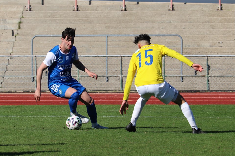 Oddevold gjorde en fantastiskt bra match mot IFK Malmö på Malmö Stadion och kunde efter överläge i paus utöka målproduktionen i den andra halvleken. Matchen slutade 0-5 (0-2) och Oddevolds mål gjordes av Kenan Mehovic 2, självmål, Carl Lext och Fredrik Sundström.. På bilden ovan ser vi hur Kenan Mehovic lurar bort försvararen Sufyan Abuzayda för att i nästa moment skruva in 3-0. Foto: Susann Sannefjäll. Oddevold gjorde en fantastiskt bra match mot IFK Malmö på Malmö Stadion och kunde efter överläge i paus utöka målproduktionen i den andra halvleken. Matchen slutade 0-5 (0-2) och Oddevolds mål gjordes av Kenan Mehovic 2, självmål, Carl Lext och Fredrik Sundström.. Oddevold kom till Malmö stärkta av segern med 2-0 mot Falkenbergs FF i den förra matchen, medan IFK Malmö hoppades kunna ta säsongens första trepoängare, efter en oavgjord och en förlust, precis som man gjorde förra året i den tredje omgången. Det var också hemmalaget som spelmässigt började bäst och det märktes, att laget ville äga mycket boll. Detta var något som Oddevold var väl medvetna om och därför inte lät sig bekymras, utan lät skåningarna hållas för att snabbt gå till attack när man erövrat bollen. Klockan hade bara med några sekunder passerat sju minuter när en omställning resulterade i mål. 0-1 (8) Axel Pettersson fick bollen tio meter till höger in på Malmös planhalva och tog sig på sin 40-metersrusch förbi sin motståndare och höll honom bakom sig. När han kom till några meter från kortlinjen spelade in bollen framför mål mot Imer Beqiri, men Malmös Kofi Yeboah Addae kom emellan och styrde in den i det egna målet. Malmö fortsatte, att spela med små marginaler och så fort Oddevold fick chansen högg man högt upp och skapade på så sätt många chanser, medan Malmö aldrig hittade vägar fram till målchanser. Deras första, och enda, skott på mål kom i den 89:e minuten, då man sköt en frispark från 30 meter, som Oscar Ekman enkelt tog hand om. Bara tio minuter efter Oddevolds första mål kom det andra. 0-2 (18) Oddevold tilldömdes frispark till vänster på planen dryga 35 meter från mål, så Malmös målvakt Melker Ellborg dirigerade hur han ville att lagkamraterna skulle placera sig. Kenan Mehovic uppfattade direkt, att Ellborg stod en bit ut från målet och sköt ett lobbskott, som via ribban gick i mål utom räckhåll för Ellborg. Malmö var inte intresserade av, att överge sitt minst sagt riskfyllda passningsspel nära det egna målet, vilket öppnade upp för chanser för Oddevold vid flera tillfällen. Bästa möjligheten i den första halvleken skapade man i den 37:e minuten, när man iscensatte ett mycket snyggt anfall, där Imer Beqiri slog en härlig passning på djupet på högerkanten till Filip Karlin. När Filip närmade sig kortlinjen slog han in bollen parallellt med denna. Passningen friställde Axel Pettersson från 5-6 meter, men Melker Ellborg gjorde en utmärkt räddning på Axels skott. Ett efterlängtat tredjemål kom inte innan pausvilan, utan den tidiga tvåmålsledningen var det Oddevold tog med sig ut i den andra halvleken. En halvlek som i mångt och mycket liknade den första – ett Malmö som hela tiden ville hålla bollen inom laget med kortpassningar ända nere från det egna målet och ett Oddevold som vid specifika tillfällen satte in en hård och hög press på bollhållaren. Man skapade redan i inledningen två heta chanser, först genom ett skott från straffområdeslinjen från Axel Pettersson, som gick strax över, och sedan ett skott från nära håll från Filip Karlin efter passning från Kenan Mehovic, som räddades av en försvarare, innan det blev tredje gången gillt strax innan spelad timma. 0-3 (58) Axel Pettersson passar till Kenan Mehovic, som befinner sig till vänster i Malmös straffområde, varpå Kenan mycket elegant lurar bort sin försvarare och knorrar in bollen högt i Melker Ellborgs vänstra burgavel. Trean var inte färdignoterad i anteckningsblocket innan det var dags för nästa mål dryga minuten senare. 0-4 (59) Elliot Stroud erövrar bollen till vänster strax utanför Malmös straffområde och klackar den vidare till Carl Lext, som avslutar från ungefär samma ställe som Kenan Mehovic vid det föregående målet. Han placerar den också i Malmömålvaktens vänstra burgavel, men med den skillnaden att bollen går in efter backen. Med dessa två snabba mål var naturligtvis Malmös öde beseglat, men matchen fortsatte på samma sätt som den gjort tidigare och med ytterligare ett mål från Oddevold. 0-5 (75) Emil Niklasson slog en välplacerad hörna från höger och i den stora trängseln framför mål är Fredrik Sundström sista spelaren på bollen, som han förpassar in i mål via sin skuldra. När klockan tickat upp till 92.31 blåste domaren av matchen. Oddevold fick med sig en härlig påskpresent hem från resan till Malmö efter en mycket bra match, allt ifrån inläsning av motståndaren och därpå följande taktik till genomförandet på planen. Vi fick verkligen bra betalt för vår höga och intensiva press, vilket resulterade i två mål, 3-0 och 4-0, samt var upphov till ytterligare farligheter. Bakåt skar vi av passningar och styrde undan Malmös framstötar så effektivt, att Oscar Ekman i stort sett var sysslolös. I nästa match, lördagen den 23 april kl 13.00, väntar åter spel på bortaplan, nämligen i form av Lindome GIF på Lindevi IP. Målen 0-1 (8) Självmål (Kofi Yeboah Addae) 0-2 (18) Kenan Mehovic 0-3 (58) Kenan Mehovic 0-4 (59) Carl Lext 0-5 (75) Fredrik Sundström Laget Oscar Ekman Philip Engelbrektsson-Fredrik Sundström-Adam Bergholtz Filip Karlin (83)-Jonas Emanuelsson (46)-Kenan Mehovic (62)-Imer Beqiri-Elliot Stroud Axel Pettersson (83)-Oscar Iglicar (52) Ersättare Armin Ibrahimovic, MV (-) Emil Niklasson (46) Carl Lext (52) Gustav Kjellström (62) Jonatan Leje Bjelkholm (83) Filip Schöön (83) Pontus Johansson (-
