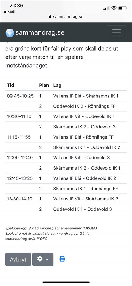 • Dagens spelschema