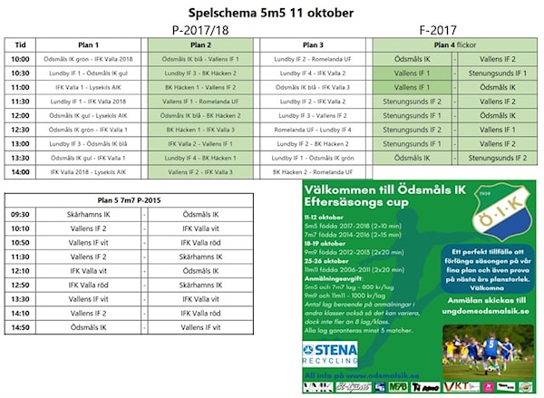 Vi har i 7m7 klassen ändrat lite i schemat, samma tider ungerfär, IFK Valla har tillkommit.