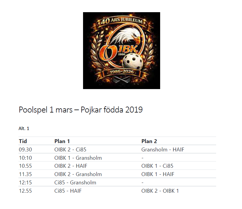 Klicka på bekräftelselänken i det mejl vi skickat dig för att börja ta emot uppdateringar från Olofströms IBK Pojkar 5-6 år (2019-2020).