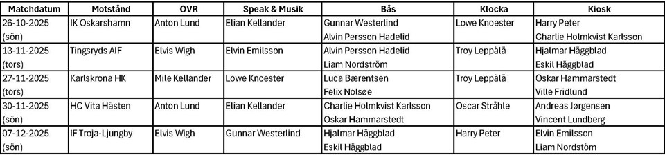 | Karlskrona HK (hemma) | 27 nov, 19:30 |
