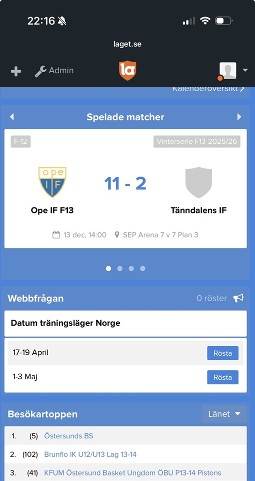 Vi planerar ett träningsläger i Brekstad utanför Trondheim i vår. Under en helg kommer vi att bo på skola och spela matcher mot två norska lag. För att hitta en helg som passar så många som möjligt föreslår vi något av följande datum: 17–19 april eller 1–3 maj. Vår ambition är att det endast ska vara fickpengar som var och en behöver bekosta själv. Kostnaderna hålls nere tack vare Anders (Lea Nilssons Pappa) som arbetar i Norge och hjälper till att anordna detta. Eventuella resekostnader hoppas vi kunna täcka via lagkassan. För att lägga er röst på datum, scrolla långt ned på lagets startsidan på appen, där ser ni en rubrik "webbfrågan", se bifogad bild. Välj det datum ni tycker passar bäst. Vi behöver svara norska teamet inom kort vilken helg dom ska boka så dröj inte för länge med att önska. Mer information kommer längre fram. Tränarna/F12 F-12 18 dec 2025 0kommentarer