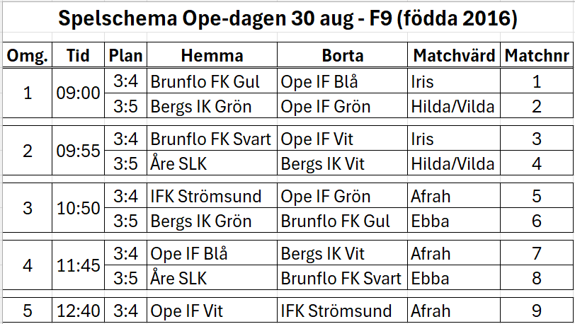 För kännedom kan spelschemat som sätts upp på Sportfältet imorgon vara felaktigt. Kansliet hade inte ändrat spelschemat utifrån de sista justeringarna och visste inte om de skulle hinna ändra till imorgon. Det är spelschemat ovan som gäller.