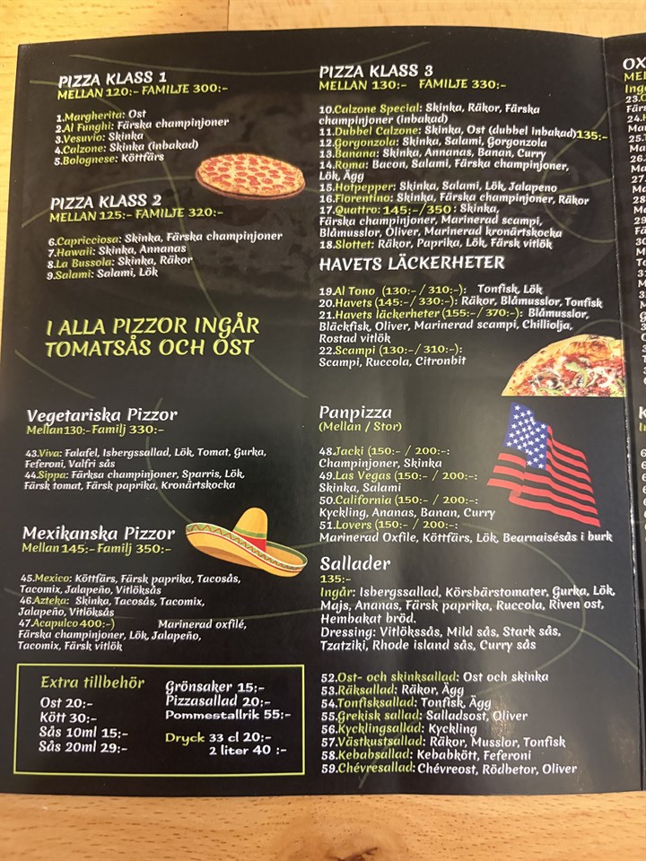 Jag lägger bilder här om jag lyckas - skulle ni gå in på hemsidan får ni lägga till 5 kroner på priset då det inte stämmer på nätet. Vill ni ha dricka till så skriv drycken och lägg till 10 kr så fixar vi leveransen till lunch .