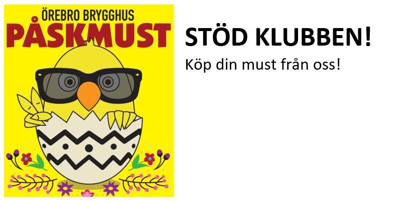 I ett fint samarbete med Örebro Brygghus har klubben fått möjlighet att sälja deras grymma Påskmust! En bra deal där klubben tjänar pengar till vår verksamhet samtidigt som man är med och stöder ett lokalt företag – win win tycker vi! Klubben har inga krav på antal sålda lådor för våra spelare, men vi hoppas att vi alla kan hjälpas år och sälja must efter bästa förmåga. Genom den här typen av försäljning så kan vi ha råd att hålla ner spelaravgifter och se till att våra ungdomar får en så bra verksamhet som vi bara kan erbjuda. Så snälla – kör er Påskmust av oss, och kolla runt med vänner och bekanta, grannar och arbetskamrater och hjälp klubben sälja must! • En låda innehåller 24 st 33cl flaskor med prima Påskmust från Örebro Brygghus. • En låda kostar 300kr • Sista beställning är 6:e mars. Datum för upphämtning av must bestäms med Örebro Brygghus efter att vi fått in alla beställningar (6:e mars) och vi kommer att ha en specifik tid där vi hämtar all must. Skicka din beställning till: faegerstad@hotmail.com På beställningen anges: Namn och kontaktuppgifter. Antal lådor man vill beställa. Betalning sker till klubbens BG 5135-1690 Ange namn o påskmust.