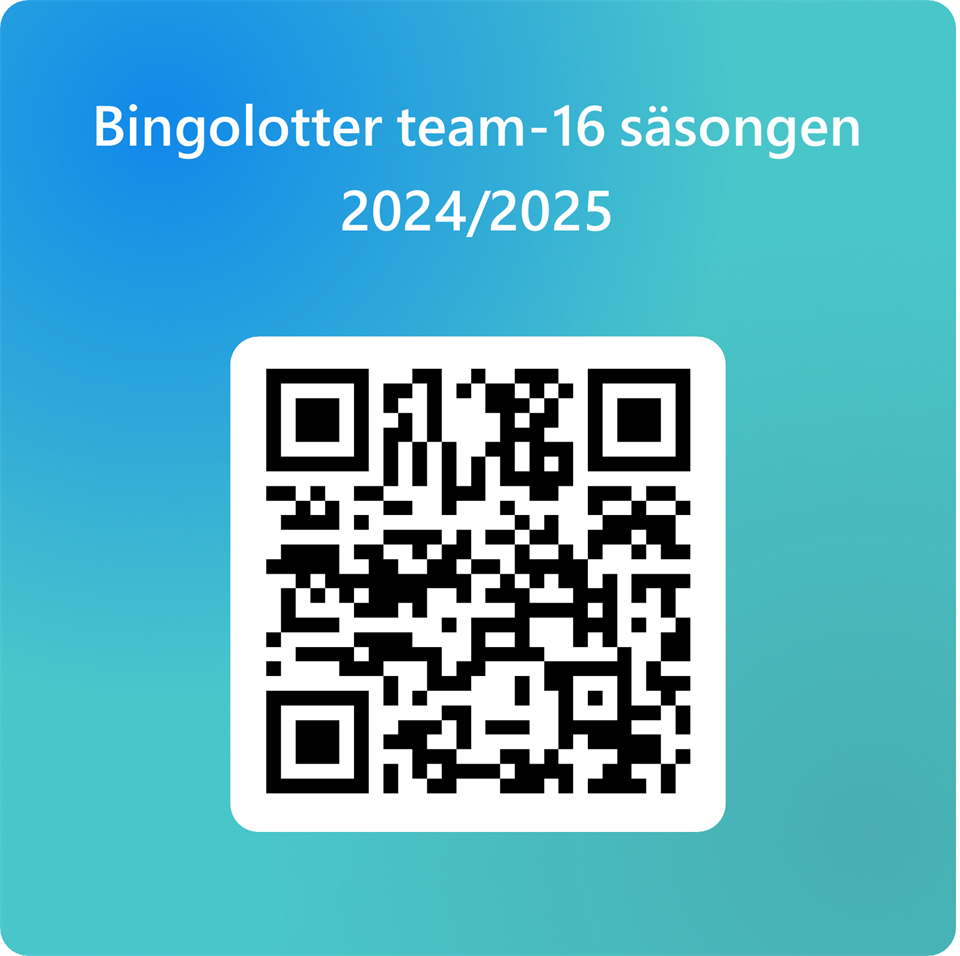 Hej! Nu är det dags att sälja bingolotter till uppesittarkvällen. Det är en föreningsförsäljning och alla spelare ska sälja 8 enkellotter var och all vinst går till föreningen. Det går inte att köpa sig fri. Om du kan sälja fler lotter utöver dessa 8 går all den vinsten till laget. Så vi har en önskan att alla försöker sälja minst 2 extra lotter eller kalender utöver kravet 😀 Alla ska registrera antal önskade lotter via forms. De obligatoriska ska INTE fyllas i. Även om du inte kan sälja någon mer lott än de 8 obligatoriska måste du svara men fyller då i 0 på alla. Klicka här! för att komma till forms eller scanna QR-koden. Sista dagen att registrera lotter är 10/11. Kort därefter kommer lotterna att delas ut. Vi återkommer med exakt datum för utdelning samt betalning närmre inpå. Under Dokument i mappen Försäljning finns det ett försäljningsblad som kan användas för att ta in förbeställning av lotter. Heja er och Team-16! / Försäljningsgruppen
