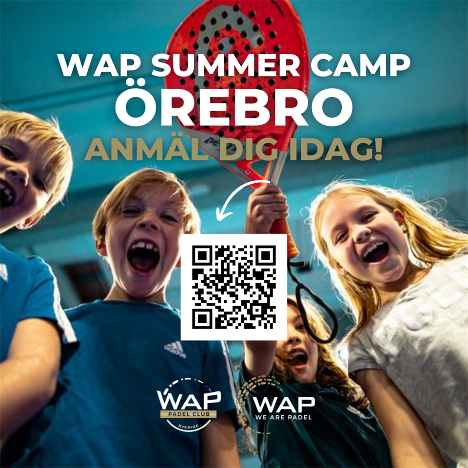 Summer Camp Välkommen till WAP Padelclub Örebros Summercamp 2023! Tidpunkt och grupper: Barn 7-11 år camps: Vecka 24 09:00 – 12:00 onsdag – torsdag. Vecka 25 09:00 – 12:00 måndag – tisdag. Vecka 25 09:00 – 12:00 onsdag – torsdag. Vecka 26 09:00 – 12:00 måndag – tisdag. Vecka 26 09:00 – 12:00 onsdag – torsdag. Pris barn camp: 599 kr. Ungdoms camps, 12-16 år : Vecka 32 10:00 – 12:00 onsdag – torsdag äldre ungdomar och matchspel. Vecka 33 10:00 – 12:00 måndag – tisdag äldre ungdomar och matchspel. Pris ungdoms camps: 400 kr. Information: WAP Padelclub Örebro arrangera summercamp för barn/ungdomar vi håller till på WAP Aspholmen - Alla är välkomna, även du som aldrig har provat på padel tidigare! Information och välkomstmeddelande kommer skickas ut till samtliga anmälda under vecka innan man ska delta i sitt eller sina camps Incheckning och avprickning, indelning i grupper och banor sker på måndag och onsdag morgon från 08:30 den första dagen på ditt camp på WAP Aspholmen Vad ingår i anmälningsavgiften Mellnamål varje dag under campen. Rack, bollar finns att låna för samtliga under hela veckan. . Anmälan sker på denna sida längre ner, faktura på 15 dagar skickas ut strax efter anmälan. Välkomna och ha kul med oss och bli en bättre padelspelare! Vid frågor eller funderingar, Max Eriksson Max.eriksson@wearepadel.se