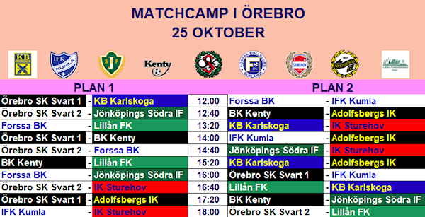 Nu på lördag anordnar vi en egen MatchCamp på Lillåns IP. Vi hälsar Forssa BK, Jönköpings Södra IF, BK Kenty, KB Karlskoga, IK Sturehov, Lillån FK, IFK Kumla samt Adolfsbergs IK varmt välkomna till en rolig lördag i fotbollens tecken på Lillåns IP.