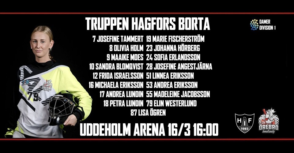På lördag är det dags för säsongens sista match... i seriespelet, när Örebro Queens åker till Hagfors för sista omgången i Division 1 2018/19. Hagfors var det lag som besegrade Örebro Queens i kvalet förra säsongen. Men, Men... oavsett hur det går får man misstänka att det blir en trevlig hemresa från Hagfors som serieledare. Vi vill redan nu passa på att tipsa om vår Allsvenska Kval-match på hemmaplan den 31/3 15:30 i Mellringehallen. Vi kommer antingen möta Floda eller Backadalen, detta avgörs i den västsvenska division 1 i helgen. I playoff två väntar segraren mellan Allsvenska IBK Telge och Per-Ols från vår egen serie. Inför matchen mot Hagfors tog vi ett snack med Elin Westerlund som har tre tidigare säsonger i just Hagfors. Hej Elin, hur känns det att ha vunnit serien och även vara klara för Allsvenskt Kval? - Hej! Det känns såklart hur gött som helst! Hur tycker du att Queens har utvecklats som lag denna säsong? - Tycker att vi bara blivit bättre och bättre ju längre säsongen gått! Du har ju varit med och kvalat tidigare med Skoghall säsongen 2014/15, vad tar du med dig från det tidigare kvalet till detta kval? - Tar framför allt med mig att allt kan hända i ett kval. Det handlar om så få matcher så inställning och vilja spelar extra stor roll. På lördag möter ni Hagfors, ni är redan klara seriesegrare, vad finns det att spela om i denna match? - Det finns mycket att spela om. Det är sista genrepet innan kvalet drar igång och det är ju alltid skönt att ha en riktigt bra match i ryggen då! Du har ju även en annan relation till Hagfors mer än att du själv har spelat där i och med att din syster spelar i Hagfors. Jag antar att du har följt dem lite extra denna säsong, hur ser du på den resa de har gjort med sitt lag under säsongen. - De har verkligen rest sig efter att serien vände. Vad jag har sett verkar de ha fått ordning på sitt spel vilket gjort att de plockat mycket poäng på slutet och är enligt mig ett av de bästa lagen i serien. Örebro Queens är det lag som släppt in minst mål i hela serien och ett bra försvarspel men även till stor del tack vare dig. Hur ser du på din egen säsong? - Det är såklart kul att vi släppt in så lite mål. Mycket tack vare riktigt mycket täckta skott av mina lagkamrater! Det blir mycket nytt att flytta till en ny stad och börja i ett helt nytt lag så tycker väl att början av säsongen gick lite trögt för egen del. Men det börjar kännas bättre och bättre så hittills är jag väl sådär nöjd. Men än är den inte slut! Är Örebro Queens redo för Allsvenskan? - Vi är redo!! Tidigare matcher mot Hagfors IF 2018-12-01 Örebro Queens - Hagfors 5-4 2018-03-24 Hagfors - Örebro Queens 5-2 (Allsvenskt Kval) 2018-03-18 Örebro Queens - Hagfors 4-6 (Allsvenskt Kval) Örebro Queens fem senaste Örebro Queens - Hallsta 6-1 Krinstinehamn - Örebro Queens 2-3 Örebro Queens - Skattkärrs IK 5-4 Per-Ols - Örebro Queens 3-6 Sala Silverstaden - Örebro Queens 3-0 Poängligan Örebro Queens 1. Josefin Tammert 42 (36+6) 2. Olivia Holm 24 (16+8) 3. Sandra Blomqbist 18 (7+11) 4. Josefine Angestjärna 17 (10+7) 5. Linnea Eriksson 16 (8+8) 6. Michaela Eriksson 16 (7+9) 7. Marie Fischerström 14 (6+8) 8. Petra Lundin 14 (5+9) Övriga matcher i omgången Lillån - Sala Silver Arboga - Karlstad Hallsta - Filipstad Skälby - Kumla Skattkärr - Per-Ols Kristinehamn - Sala Tabellen Damer Division 1 Nästa hemmamatch spelas den 31/3 15:30 i Mellringehallen. ALLSVENSKT KVAL! Och glöm inte att följa oss på vår nya Facebooksida: https://www.facebook.com/queensorebro/ Vi finns naturligtvis även på instagram under namnet orebroinnebandydam.