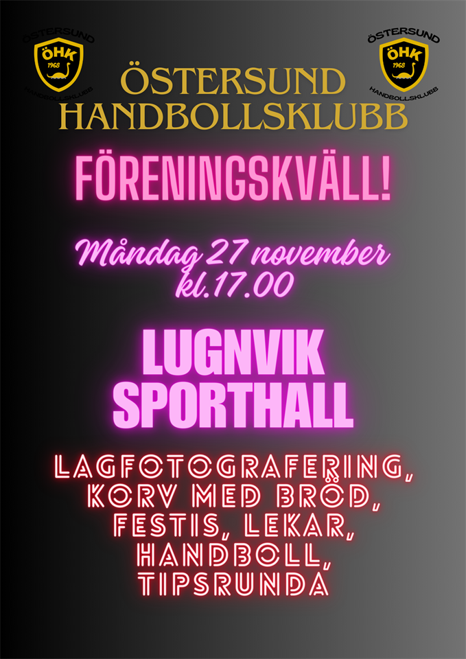 Immorgonkväll, måndag den 27 november kl 17-19 har vi föreningskväll i Lugnvik sporthall. Östersunds HK 26 nov 2023 0kommentarer