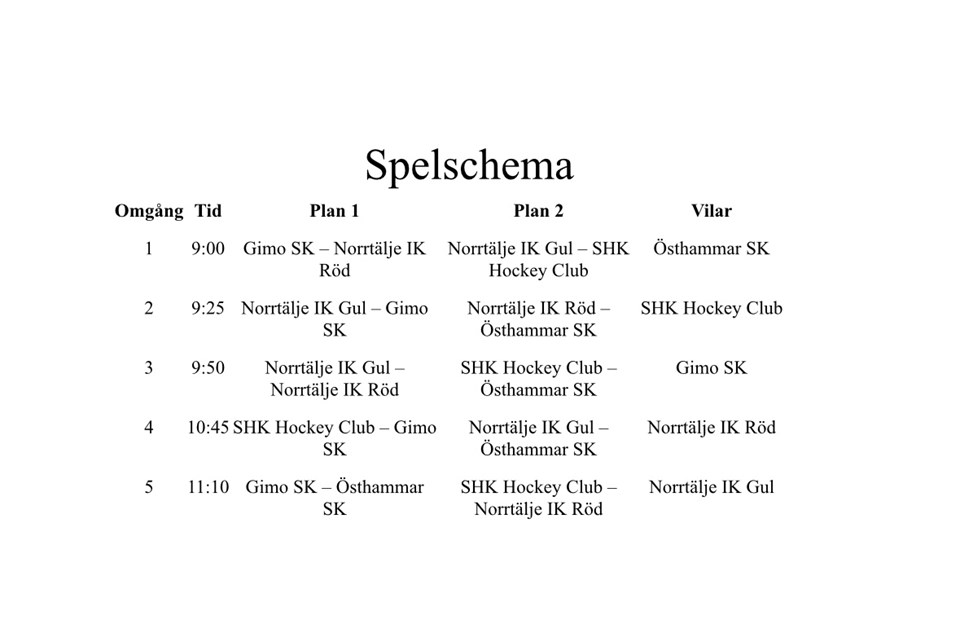 | Norrtälje IK Röd (hemma) | 30 nov, 10:00 |