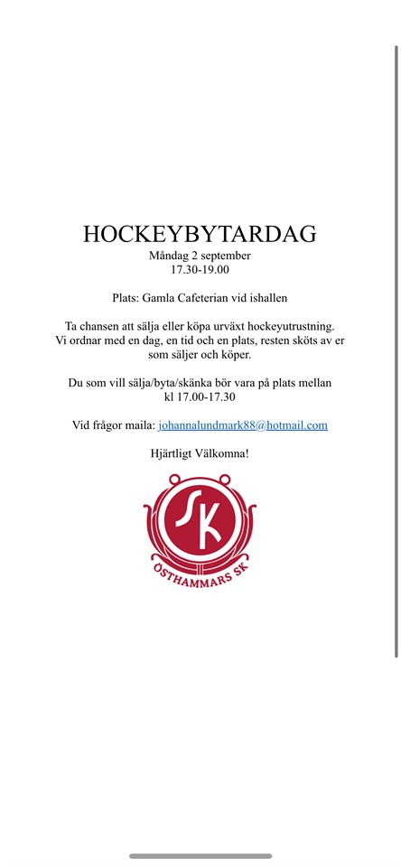 Kom ner till ishallen på måndag om ni har urväxt utrustning! Ishockey Team 14 30 aug 2024 0kommentarer