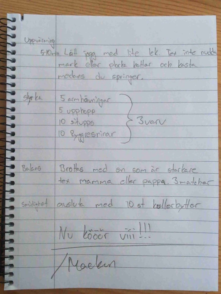 • Egen träning på måndag.