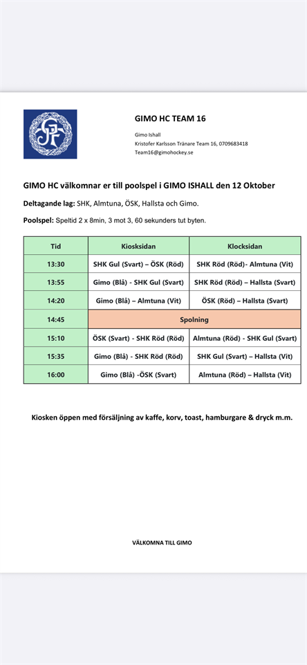 Gimo IF HC Vit (borta) | 18 okt, 09:00 |