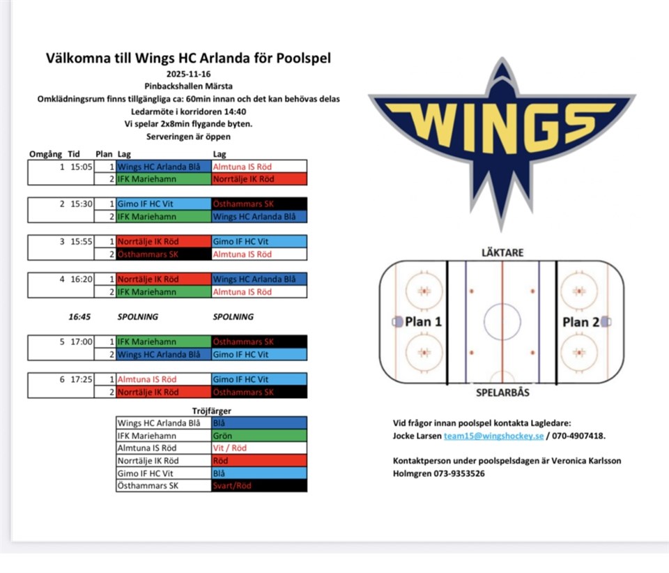 | Gimo IF HC Vit (borta) | 29 nov, 10:00 |