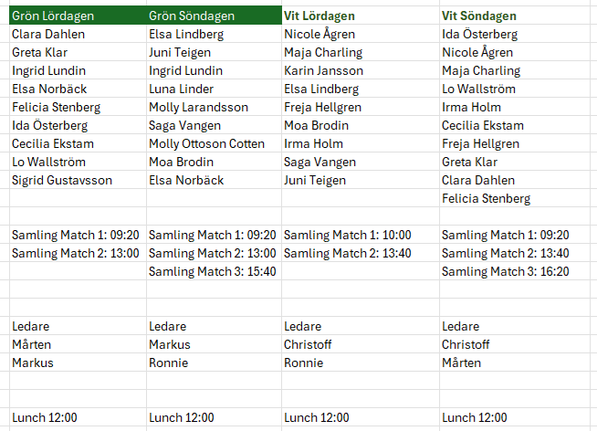 Hej! Snart är det dags för en av årets största händelser! ÖDIK-cup på hemmaplan! Vi ser gärna att tjejerna äter lunch tillsammans på tallmovallen. Lunch kan köpas till ett rabbaterat pris av deltagarna direkt på plats. Vi äter lunch ca 11:30 på lördagen och 12:00 på söndagen för de som är på plats. Det är ok att åka hem emellan. Kost direktiv: Tänk på att det blir långa dagar för tjejerna. Så fyll på energiförrådet med mat och avstå ifrån sötsaker tills efter att sista matchen för dagen är spelad så kommer tjejerna orka hela helgen :) Hygien: Det är mycket sjukdommar just nu, dels i laget men framförallt vad vi hör ifrån skolorna med hosta, magsjuka och säkert några vanliga förkylningar så vi rekommenderar att sprayflaska tas med syfta att svalka sig istället för att doppa huvudet i hink. Det kommer vara väldigt mycket folk och saker som tar fokus så se till att tjejerna är i god tid till samlingstider. Se också till att eventuell konfektyr är konsumerat i god tid innan samling, glass, godis och liknande är inte OK i att ha med inn i omklädningsrummet. Första samlingstiden är 1h innan första matchen. Sedemera 40min innan match 2 och 3. Samlingen är för att vi som ledare ska ha tid att få till ett bra fokus för tjejerna, aktivera kroppen i lugn och ro utan stress. Bifogad bild innehåller lagindelning vilket lag ditt barn spelar i samt samlingstider för matcherna. Matchstarttider för hela cupen går att finna under fliken "ÖDIK cup" ovan. Väl mött! Ledarna F-2015 11 jun 2025 6kommentarer