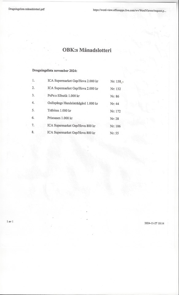 Här kommer dragningslista på vårt månadslotteri november. Grattias till vinnarna!
