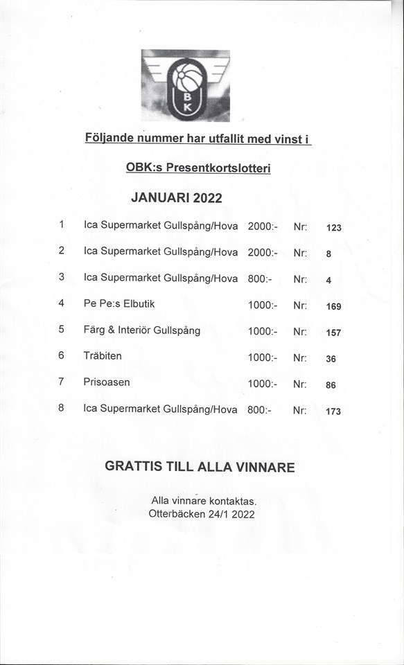 här kommer dragningslista för januari månad. Grattis vinnare! Otterbäcken-Hajstorp 30 jan 2022 0kommentarer