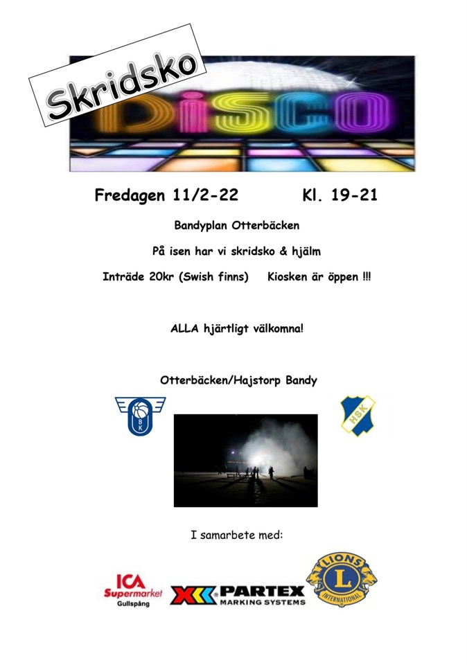 På fredag den 11/2 är det skridskodisco på Otterstrand. Välkomna! Otterbäcken-Hajstorp 4 feb 2022 0kommentarer