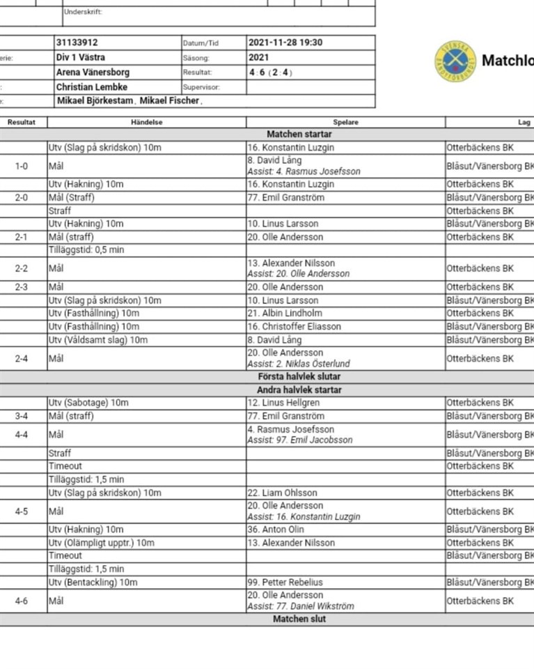 Vi tar andra raka när vi slår Blåsut med 4-6, 2-4 i halvtid. En jäkla kämpaseger. Vi ligger under, går ikapp och går ifrån. Sen blir vi lite ängsliga och Blåsut kommer ikapp. Jag tycker ändå att vi tar de på kraft och åkstyrka till slut med ett uppoffrande spel och härlig karaktär från killarna! Daniel gör en bra match i mål och Olle sätter 5 mål och en ass. Otterbäcken-Hajstorp 28 nov 2021 0kommentarer