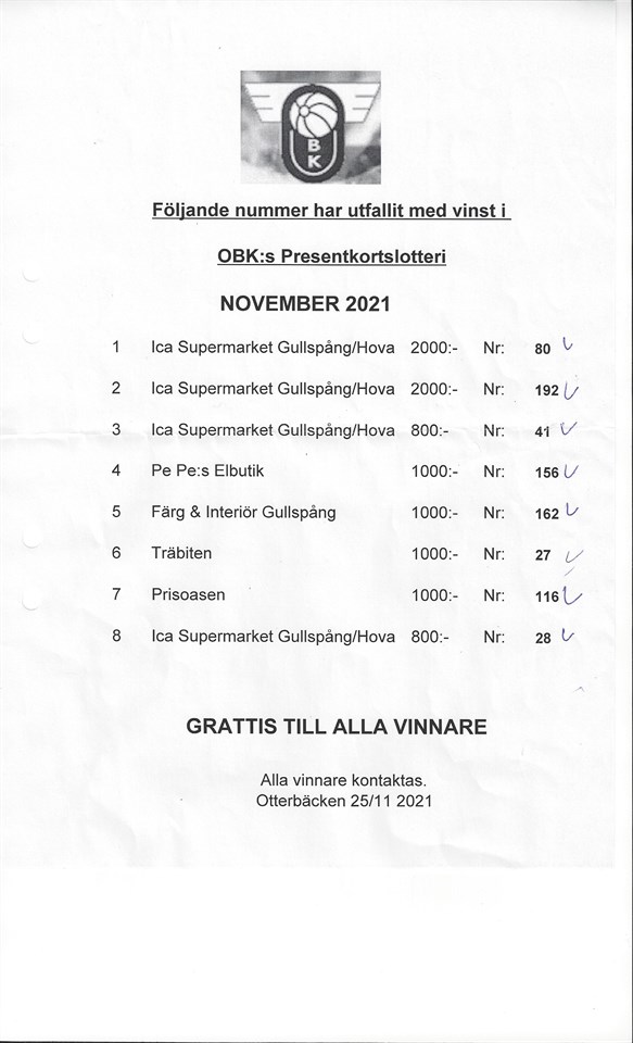 Här kommer novembers dragning av det populära månadslotteriet. Grattis vinnare! Otterbäcken-Hajstorp 1 dec 2021 0kommentarer
