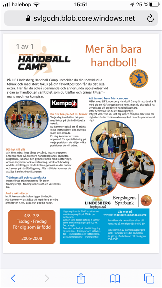 Hejsan Ett snabbt beslut behövs! Jag har fått till min kännedom idag att det finns 8 platser kvar till LIFs handbollscamp i sommar! Det kostar 800:-/ deltagare( som man betalar själv) och ingen övernattning. Man fixar skjuts själv. Annars så stämmer det som står i inbjudan! Men är det någon som vill så måste vi veta det idag !!. Vår ordförande Mathias har kontakt med LIF i frågan . Jag förmedlar kontakt med Mathias om man vill anmäla sig. Den sköter man resten själv. // Maria P-07/08 16 jun 2020 0kommentarer
