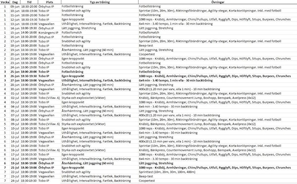 Vi kommer ha träningsuppehåll i juli. Önskvärt att alla spelare får ihop minst 2 träningspass i veckan. August har lagt upp ett träningsschema som han kommer köra under angiven, tid, dag och plats enligt träningsschemat.