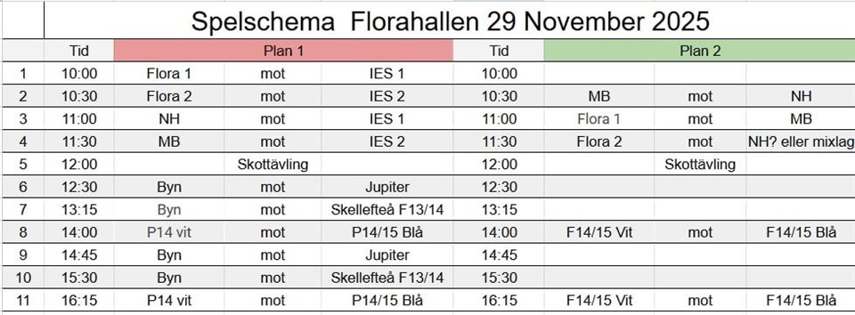 Bifogar spelschemat i inlägget, det är på florahallen och det kommer finnas kiosk där man kan köpa mat och fika.