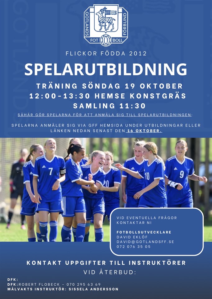 Gotlandsfotbollsförbund bjuder in till nytt spelarutbildningstillfälle för flickor födda 2012 den 19/10 i Visby