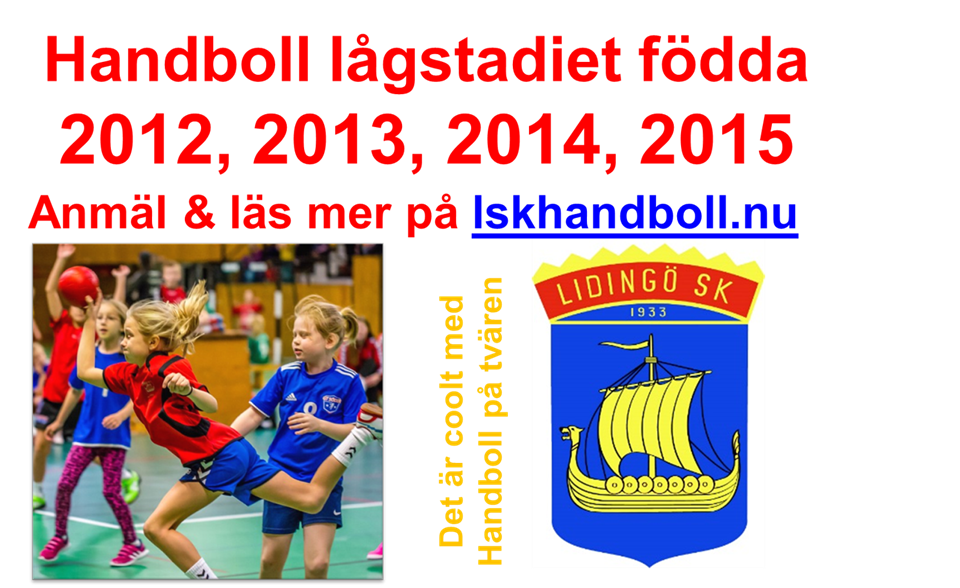 Alla barn är välkomna att prova på under terminen, våra yngsta grupper (lågstadiet och FSK) tränar alla på söndagar i våra två hallar i Gångsätra på Läroverksvägen. Hitta din grupp nedan och anmäl ditt intresse. Välkomna! BOLLSKOJ FÖDDA 2015 - START 10 OKT Lidingö SK:s Bollskoj är ett allsidigt och roligt lekpass där barnen får pröva på olika bollekar, redskaps- och hinderbanor och koordinationsövningar. Leken och glädjen är det viktigaste! ANMÄLAN HÄR HANDBOLLSSKOLA FÖDDA 2014 - START 22 AUG För alla som börjar 1:a klass har vi Handbollsskolan som är en fortsättning på Bollskojs bollekar och koordinations- och teknikövningar, rulla, studsa, kasta boll på olika sätt samtidigt som man rör sig med bollen. Vi adderar ytterligare handboll med matchspel på miniplan och skott-, hopp- och fartövningar. ANMÄLAN HÄR BILDALAG FÖDDA 2013 - START 22 AUG I 2:a klass bildas lag med föräldratränare och matchspel i sammandrag 3-4 ggr per termin. På träningarna fortsätter vi fokusera på grundfärdigheter, koordination och kombinationsteknik. Öga-hand fotmotorik, passa-fånga-skjuta-dribbla med händer och fötter under rörelse på varierande sätt. Viktigt att ha med bollen i allt med hög aktivitetsgrad och inga köer. ANMÄL INTRESSE GENOM ATT MEJLA SPELAHANDBOLL@LSKHANDBOLL.NU POJKAR OCH FLICKOR FÖDDA 2012 - START 22 AUG För 3:e klassare fortsätter matchspel på miniplan och på träningarna prioriteras färdighetsinlärning och individuell teknik med stegisättningar, finter båda sidor om motståndare/genombrott. Vi fortsätter skapa rutiner kring träning och matcher som ger trygghet och gör att alla barn blir sedda. ANMÄL INTRESSE GENOM ATT MEJLA SPELAHANDBOLL@LSKHANDBOLL.NU LIDINGÖ SK HANDBOLL Lidingö SK Handboll är en mycket jämställd förening med lika många pojk- som flicklag och vi gör roliga saker tillsammans både i samma åldersgrupp (pojkar + flickor) och med hela föreningen. Vi har vårt ”handbollsnäste” i Gångsätrahallarna mitt på Lidingö med matchhallen Gångsätra med plats för över 400 på läktaren samt vår nybyggda träningshall LSK-hallen precis bredvid. Trots storlek på klubben med över 600 medlemmar, över 30 ungdomslag och 100-tal ledare är LSK Handboll en familjär förening där spelare, föräldrar, ledare och tränare känner varandra i både samma åldersgrupp som äldre och yngre.