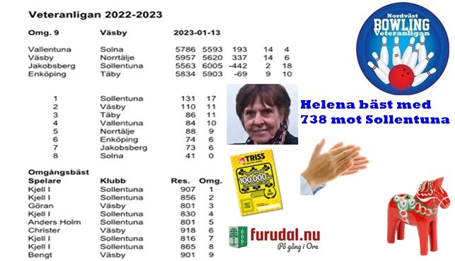 Vi hade inte mycket att sätta emot Sollentuna som vi befarade innan matchen. Största förlusten på länge,. Hela 18-2 i baken. Totalen blev 5563. Det är den nivån vi har haft senaste tiden. Men vi kan bättre. Vi borde kunna ligga lite högre när det stämmer för flertal spelare. Räcker inte med 2-3 spelare som är godkända varje match. Vi får försöka att skärpa till oss så att poängen börjar ramla in. Denn dag var Helena bäst med 738 tätt följd av Erik med 735 och Ove med 712. Övriga låg mellan 650-700. Ny möjlighet mot Täby i Norrtälje 27 jan. kl.10.30. Krönikör vid tangenterna som vanligt webmaster. PBK Käglan Järfälla 14 jan 2023 1kommentar
