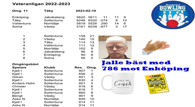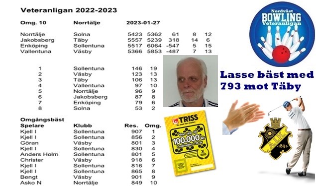 Tung förlust mot Enköping vilket inte borde ha skett. Efter att haft ledningen med 9-6 efter 3 serier. Kollektiv kollaps i sista och 0-5 i baken.Ingen orkade över 185 i sista. Ett bottennapp i sista är inte bra. Enköping imponerade heller inte. Lagledaren kan inte vara stolt efter denna match. Dessutom ingen reserv att kasta in när det kärvar.. Bäst för dagen Jalle med 786, följd av Lasse med 753 och Ove 749. Inte samma sak att spela hemma och sedan i bortahall vilket har besannats många ggr. Bara att ta nya tag och försöka orka 4 serier. Nästa match är mot Norrtälje i Sundbyberg 24 feb kl.10.30 Observatör online webmaster. PBK Käglan Järfälla 10 feb 2023 0kommentarer