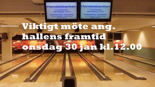 I kväll kommer SVT lokal TV Stockholm och intervjuar Marianna angående bowlinghallen. Bra med nyhetsspridning. Vet inte riktigt när det konmmer att sändas. Vi får bevaka lokala nyheterna på TV. Styrelsen kallar till extra medlemsmöte onsdag 30 jan kl.12.00 efter bowlingen. Hög tid att agera för hallens bevarande. Styrelsen föreslår att en fristående arbetsgrupp bildas för att möta både Järfälla kommun och Järfällahus. Vi vill veta hur de tänker om bowlingens framtid i Järfälla och om rimligheten att hyran höjs så orimligt mycket. Känner du dig engagerad och vill vara med och påverka, kom till mötet på onsdag. Eftersom det blir en fristående grupp kan personen vara medlem i en PRO alt. SPF grupp eller i annan aktiv bowling grupp. Hälsningar styrelsen