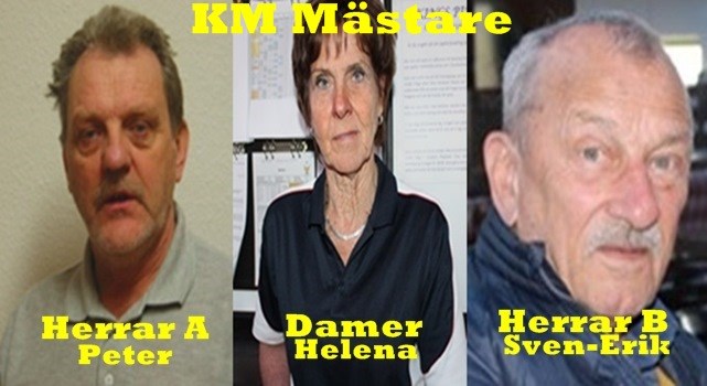 På onsdagen avslutades säsongens KM med spel i hemmahallen i strålande solsken med 28 startande. Många spända ansikten syntes bland de startande. Många nerver låg utanpå tröjorna. Som vanligt blev det en gastkramande duell i framförallt Herrar B. I damklassen var Helena aldrig direkt hotad utan vann KM mycket klart. Tvåa också i år blev Inger som ledde tidigare. Trea detta år blev Birgitta som behöll sin tredjeplats sen tidigare. I herrar A drog Peter det längsta strået för dagen och vann klart före Janne till totalseger med hela 90 poäng. Trea blev Oliver S. som dök upp som gubben i lådan och avancerade från femte till tredje plats och gick om Jalle. Bäst för dagen var dock Lasse E. med 767. I herrar B ledde Börje Å knappt före Kjell S inann finalen. Men Kjelle kunde inte spela pga skada. Då dök oväntat gamlingen Sven-Erik upp som gubben i lådan och snuvade Börje på segern med knappa 8 poäng. Stort Grattis till alla pristagare och tack till styrelsen för arrangemanget. En komplett resultatlista finns att hitta under Lagspel på huvudmenyn. Vid tangenterna webmaster
