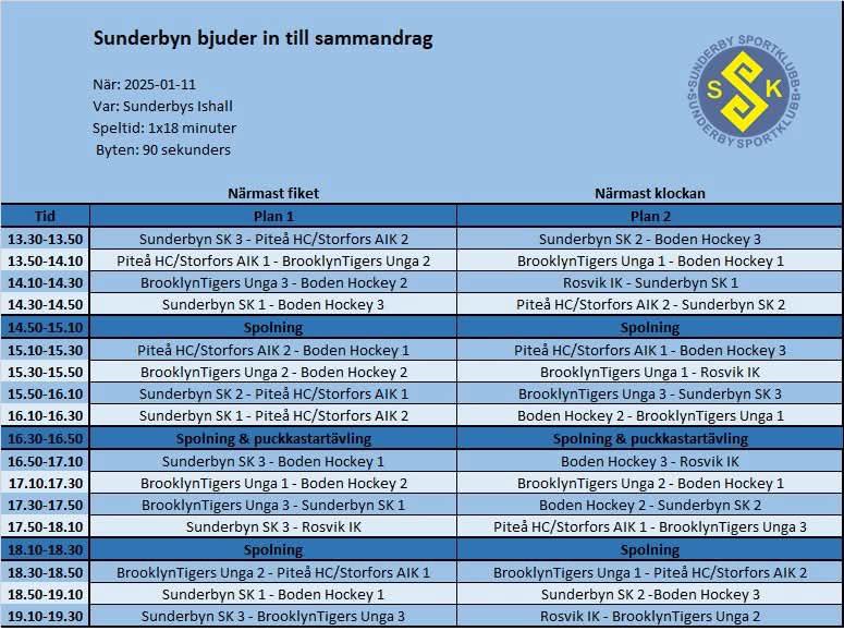Spelschema söndag 12 okt - Sparbanken Nord Cup